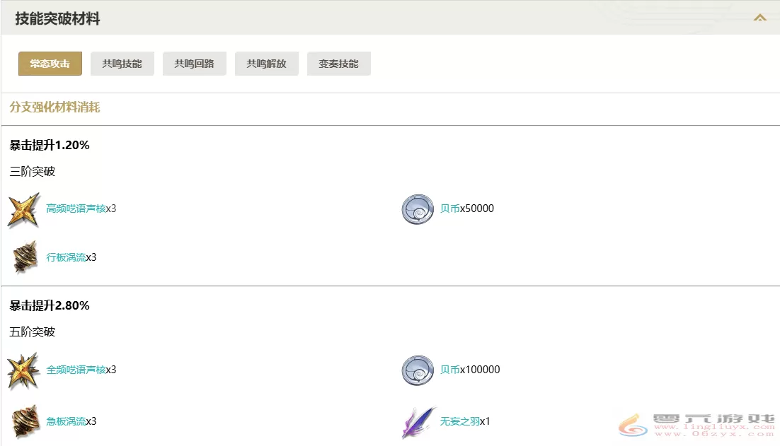 鸣潮吟霖技能突破材料一览